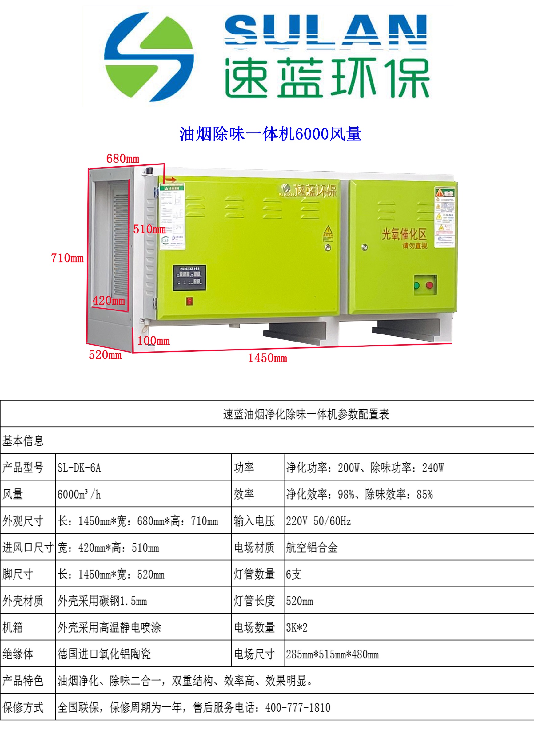 6000風(fēng)量油煙凈化器一體機(jī)類別:餐飲油煙凈化除味一體